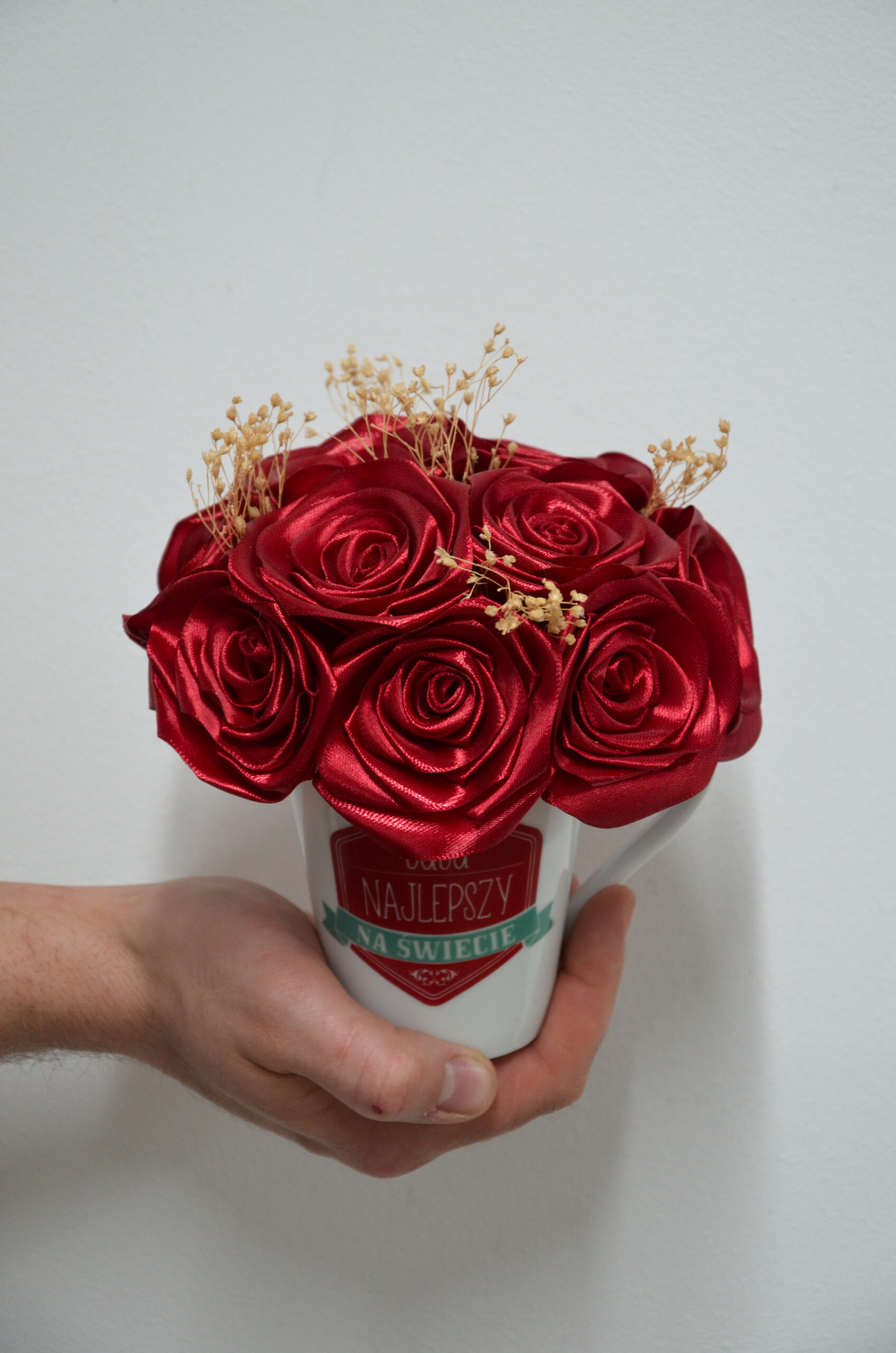 Wyjątkowa kompozycja kwiatowa stworzona specjalnie z okazji Dnia Taty, która w elegancki i symboliczny sposób wyrazi wdzięczność oraz miłość. Aranżacja składa się z czerwonych róż wykonanych z wysokiej jakości materiału, uzupelnionych delikatnymi suszonymi dodatkami. Całość umieszczona jest w białym kubku z napisem “Tata najlepszy na świecie”, który nadaje kompozycji osobistego i sentymentalnego charakteru. Kompozycja sprawdzi się jako prezent dla taty – zarówno jako samodzielny upominek, jak i dodatek do większego prezentu. To trwałą pamiątka, która będzie cieszyć oko przez długi czas i stanowić piękną dekorację domu lub biura. Idealny wybór na Dzień Ojca – dla taty, który zasługuje na coś naprawdę wyjątkowego.